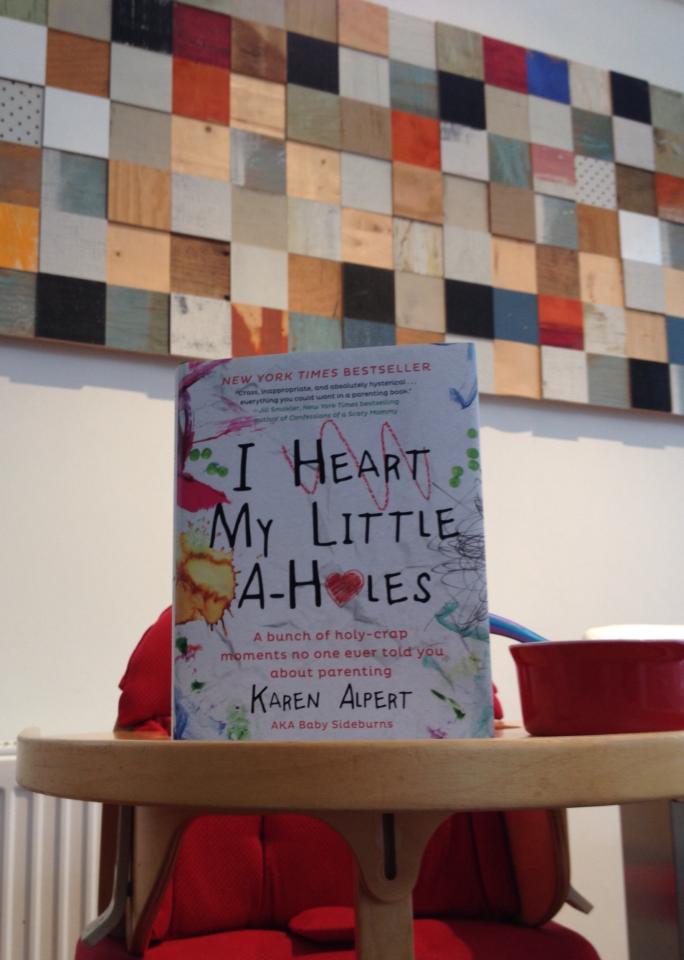 A courier came knocking this morning with this little gem, ordered by my outstanding husband. I’ve been wanting to read “I heart my little a-holes” by Karen Alpert ( Baby Sideburns) ever since she had it published.