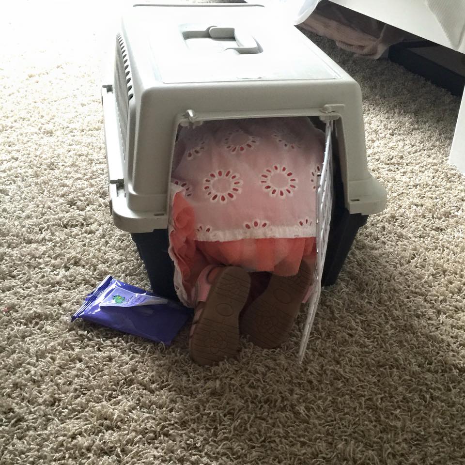 12. Discover baby stuck in cat cage.