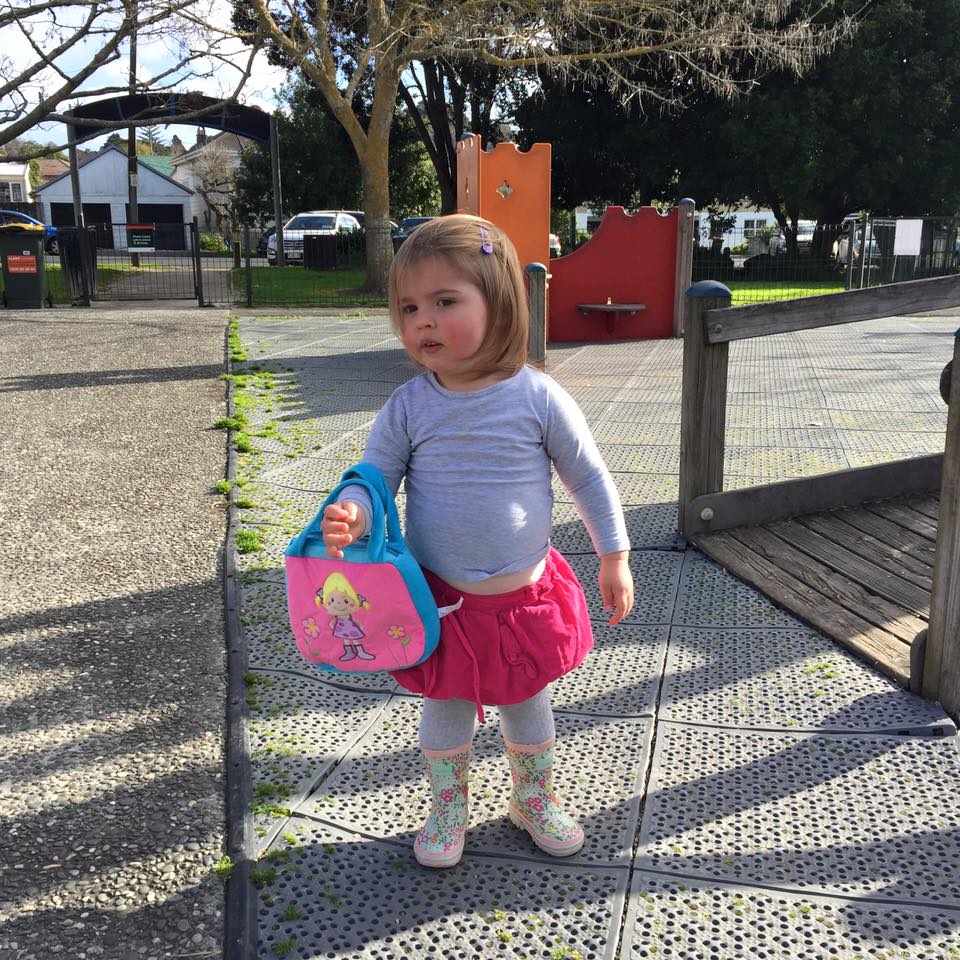 This morning she grabbed a bottle of wine in the supermarket and yelled “Cuggle wine! Kisses wine!”. This afternoon she’s standing in a playground wearing a food-stained top and carrying an oversized bag full of crap.